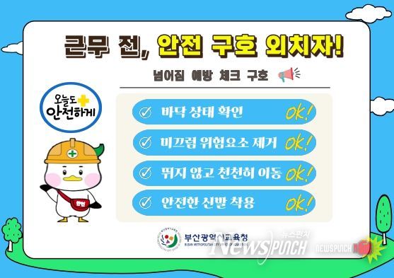 부산광역시교육청은 산업재해 통계자료 분석을 기초로 지난해 2분기 자주 발생했던 ‘넘어짐’ 사고를 예방하기 위한 행동수칙 안내문을 현장에 배포했다고 24일 밝혔다.