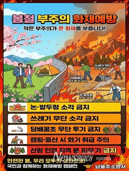 남울주소방서 관계자는 “봄철 사소한 방심이 소중한 생명과 재산을 앗아갈 수 있다”라며, “시민 여러분의 성숙한 안전의식과 적극적인 협조를 부탁드린다”라고 말했다.