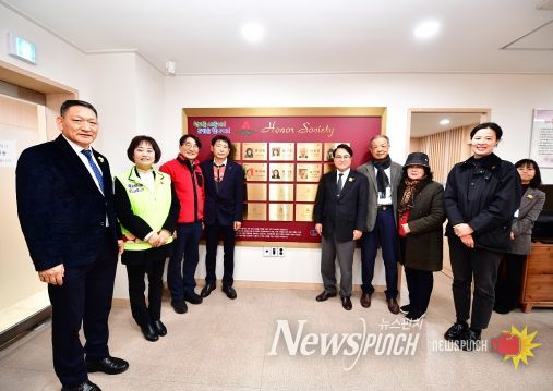 뉴스펀치 김수동 기자 | 청도군은 군청 2층 군수 접견실 대기실에 아너소사이어티 홍보존을 설치하고 28일 제막식을 가졌다.