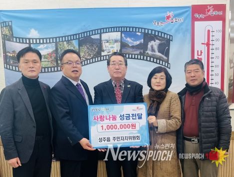 뉴스펀치 김수동 기자 | 성주군 성주읍 주민자치위원회는 12월 29일 지역사회 취약계층을 위해 성금 100만원을 기탁하며 희망2024나눔캠페인에 동참했다.