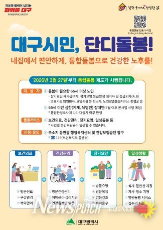 뉴스펀치 조평훈 기자 | 대구광역시는 3월 27일 '의료·요양 등 지역 돌봄의 통합지원에 관한 법률 시행에 따라, 대구형 통합돌봄 ‘단디돌봄’을 본격 추진한다.