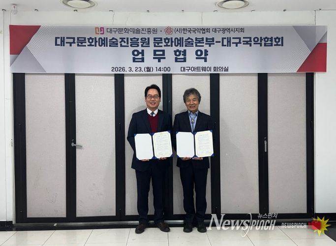뉴스펀치 조평훈 기자 | 대구문화예술진흥원 문화예술본부과 대구국악협회가 3월 23일 업무협약을 체결했다.