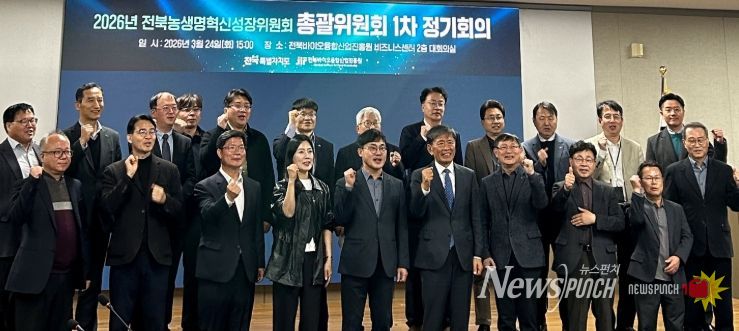 뉴스펀치 최영남 기자 | 전북특별자치도 농생명혁신성장위원회는 24일 전북바이오융합산업진흥원에서‘2026년 제1차 총괄위원회’를 열고, 기업 기술수요 기반 지원과 기술사업화 확대 방안을 논의했다고 밝혔다.
