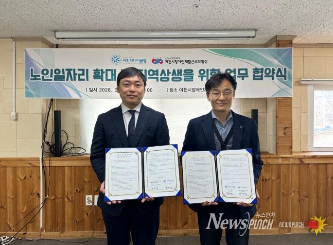 뉴스펀치 박상훈 기자 | 이천시는 이천시니어클럽이 2026년 신규 노인일자리 사업으로 장애인 지원 사업을 추진하고, 3월 23일 이천시장애인재활근로작업장과 업무협약을 체결했다고 밝혔다.