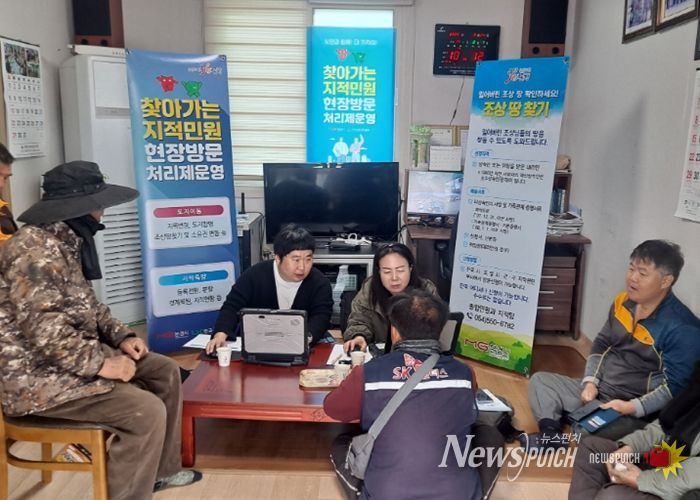 뉴스펀치 박세훈 기자 | 문경시는 지난 3월 24일, 농암면 율수1리(오전)와 내서1리(오후)를 차례로 방문하여 시민들의 토지 관련 궁금증을 현장에서 해소하는 '찾아가는 지적민원 현장 처리제'를 실시했다.