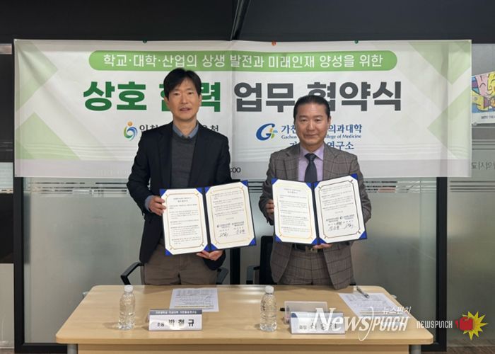 뉴스펀치 정홍균 기자 | 인천광역시교육청은 24일 가천대학교 의과대학 가천통증연구소(소장 박철규)와 학교·대학·산업의 상생 발전 및 미래 인재 양성을 위한 업무협약을 체결했다.