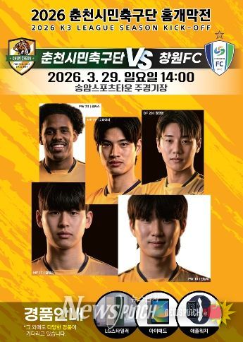 뉴스펀치 조평훈 기자 | 춘천시민축구단이 2026 시즌 K3리그 홈 개막전에서 ‘첫승’ 사냥에 나선다.