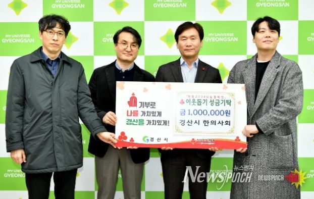 뉴스펀치 김수동 기자 | 경산시한의사회는 29일 경산시청을 방문해 어려운 이웃들을 위해 회원들의 뜻을 모아 이웃돕기 성금 1백만원을 경산시에 전달했다.