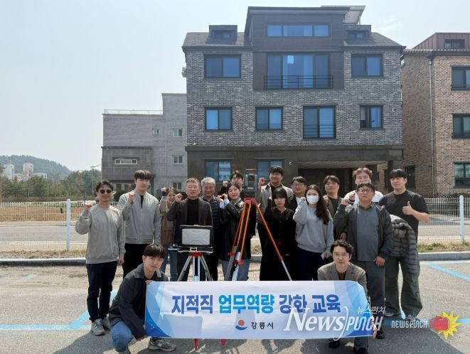 뉴스펀치 조평훈 기자 | 강릉시는 지난 3월 27일 유천동 일원에서 지적직 공무원 21명을 대상으로 현장 실무능력 배양을 위한 '2026 기술직 역량강화 지적측량 실습 교육'을 실시했다.