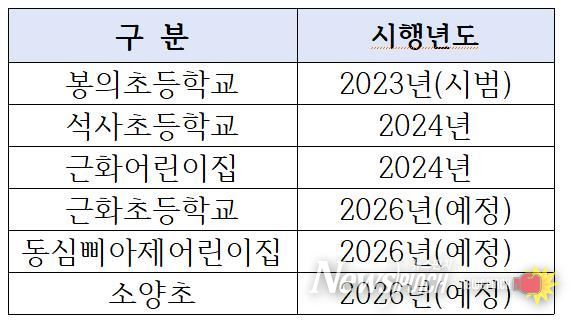 한편 시는 지난 2023년 봉의초등학교를 시작으로 2024년 석사초와 근화어린이집 등 총 3곳에서 탄력운영을 도입해 왔다.