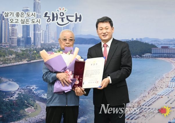 뉴스펀치 김윤걸 기자 | 해운대구는 지난 31일, 6·25전쟁에 참전해 공을 세운 故 정봉술 참전용사와 故 김해곤 참전용사의 유족에게 국방부 장관을 대신해 화랑무공훈장을 전수했다고 밝혔다.