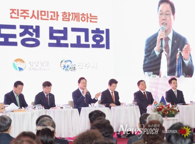 뉴스펀치 박세훈 기자 | 경상남도는 2일 진주실내체육관에서 ‘진주시민과 함께하는 도정보고회’를 열고, 진주를 중심으로 한 우주항공산업 육성과 지역 균형발전 방안을 밝혔다.
