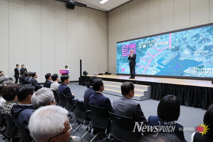 뉴스펀치 김윤걸 기자 | 부산시는 2일 오후 1시 50분 부산항국제전시컨벤션센터에서 '산복도로, 100년의 교통·주거혁명 프로젝트' 정책 브리핑을 개최하여, 산복도로 일대 교통과 주거환경을 개선하고 원도심 재도약을 위한 미래 비전을 발표했다.