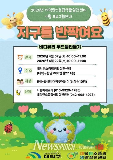 뉴스펀치 이현승 기자 | 대전 대덕구는 4월을 맞아 탄소중립 실천과 환경보호 중요성을 알리기 위해 어린이 대상 체험 프로그램 ‘지구를 반짝여요’를 운영한다.
