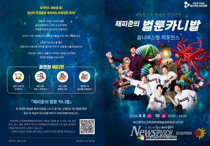 뉴스펀치 김윤걸 기자 | 부산광역시교육청학생예술문화회관은 오는 8일부터 10일까지 학생예술문화회관 대극장에서 초·중·고 학생 2,400여 명을 대상으로 ‘해피준의 벌룬카니발’ 공연을 개최한다.