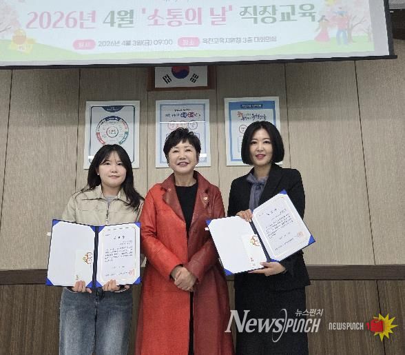 뉴스펀치 이현승 기자 | 충청북도옥천교육지원청은 4월 3일, 청렴한 공직사회 구현과 친절한 조직문화 조성에 기여한 ‘청렴 우수직원’과 ‘OK-Edu 친절직원’ 표창을 수여했다.