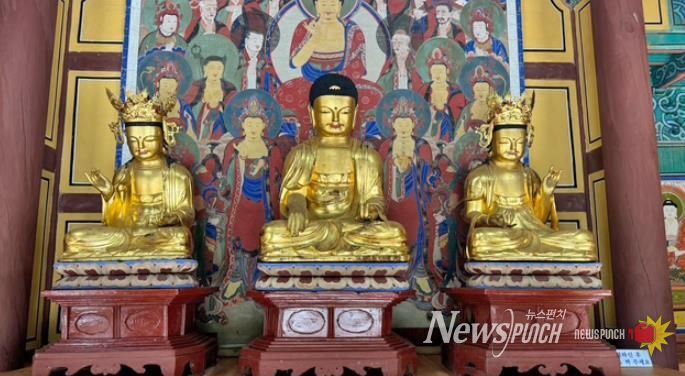뉴스펀치 정홍균 기자 | 임실군 관촌면 소재 신흥사 대웅전에 봉안된 '목조석가여래삼존불 및 대좌'가 4월 3일 전북특별자치도 유형문화유산으로 고시됐다.
