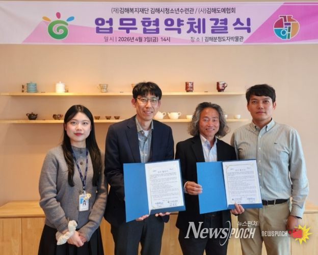 뉴스펀치 박세훈 기자 | (재)김해시복지재단 김해시청소년수련관과 (사)김해도예협회는 지난 3일 청소년 진로·문화체험 활성화를 위한업무협약(MOU)을 체결했다.