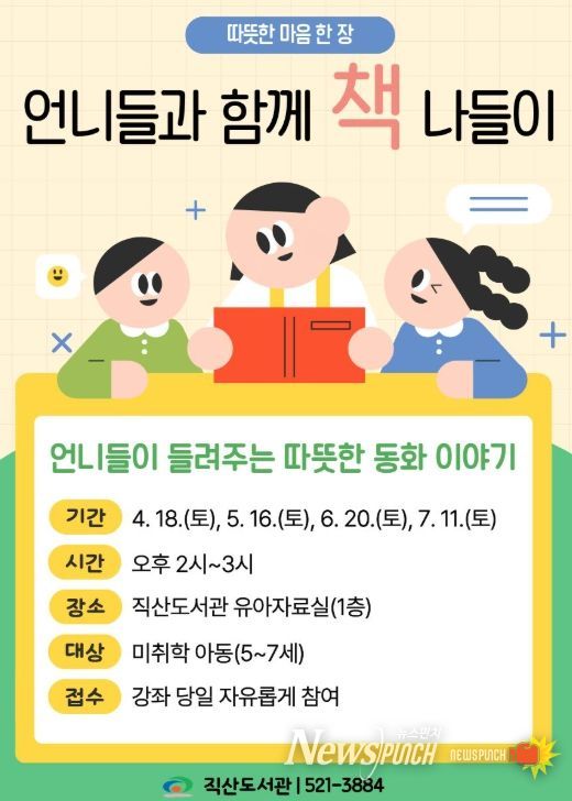 뉴스펀치 이현승 기자 | 천안시 직산도서관은 오는 7월까지 ‘언니들과 함께 책 나들이’를 운영한다고 7일 밝혔다.