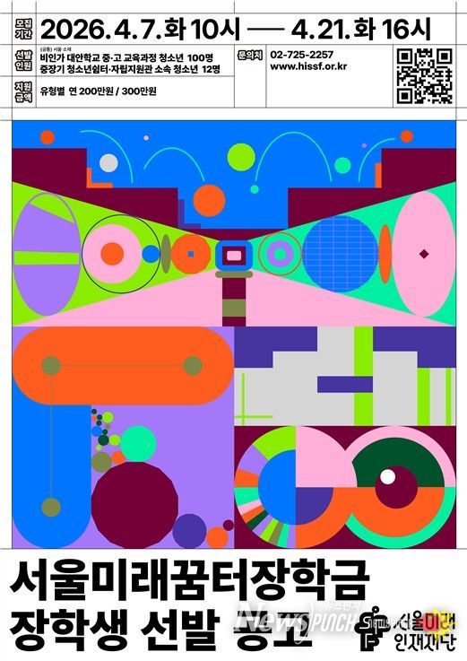 뉴스펀치 박상훈 기자 | 서울미래인재재단은 기존 서울꿈길장학금의 지원 대상을 확대하고 유형을 세분화하여 ‘서울미래꿈터장학금’을 신설한다. 재단은 비인가 대안학교 재학생은 물론 가정 밖 청소년까지 총 112명을 선발하고, 총 2억 3,600만 원 규모의 학업 장려금을 지원할 계획이다.