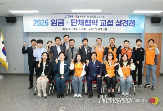 뉴스펀치 김용희 기자 | 고흥군과 공공연대노동조합은 지난 6일 군청 팔영산홀에서 2026년 임금·단체협약 체결을 위한 상견례를 개최하고 본격적인 교섭에 들어갔다.