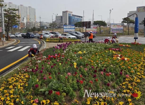 시는 주요 교통섬 6개소와 대형 화분 등에 봄꽃을 배치해 운전자와 보행자 모두가 봄의 정취를 느낄 수 있도록 했다.