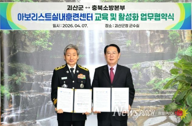 뉴스펀치 이현승 기자 | 충북 괴산군은 7일 군청 집무실에서 충북소방본부와 ‘아보리스트 교육 및 교육센터 활성화 업무협약(MOU)을 체결했다고 밝혔다.