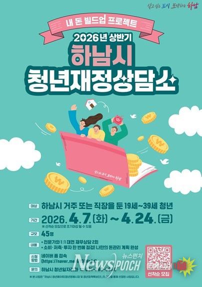 뉴스펀치 박상훈 기자 | 하남시는 청년들의 체계적인 자산관리를 지원하기 위해 ‘2026년 상반기 하남 청년재정상담소’ 1대 1 재무 상담 참여자를 오는 4월 24일까지 선착순 모집한다고 밝혔다.