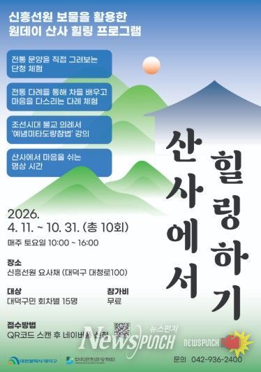 대덕문화관광재단 관계자는 “산사라는 특별한 공간에서 전통문화를 체험하며 몸과 마음을 쉬어갈 수 있도록 프로그램을 준비했다”며 “앞으로도 지역 문화유산을 활용한 치유형 문화 프로그램을 지속적으로 확대하겠다”고 말했다.