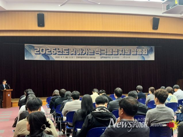 뉴스펀치 정홍균 기자 | 전북특별자치도는 지난 7일 도청에서 ‘2026년도 찾아가는 적극행정지원 설명회’를 개최하고, 공직자의 업무 부담을 줄이면서도 적극적인 행정 추진을 지원하기 위한 제도 안내에 나섰다.