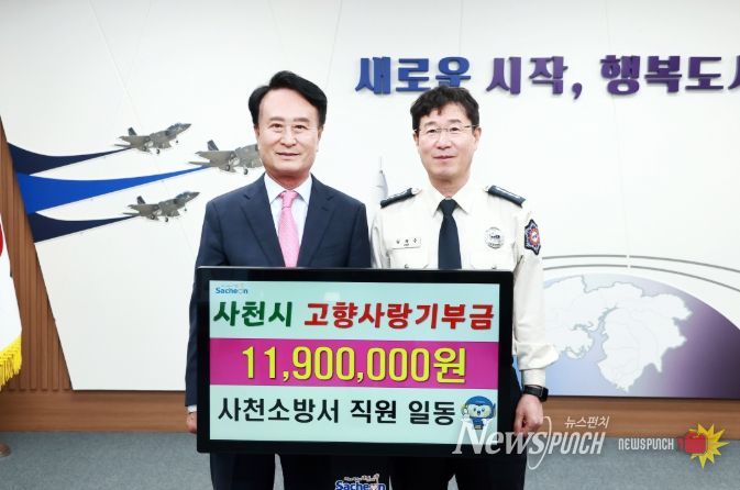 뉴스펀치 박세훈 기자 | 국민의 생명과 안전을 수호하는 사천소방서가 8일 사천시고향사랑기부제에 3년 연속 동참하며 특별한 고향 사랑을 실천했다.