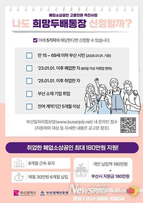 뉴스펀치 김윤걸 기자 | 부산시와 (재)부산경제진흥원은 '폐업소상공인 고용전환 촉진 사업'을 지난해 6월부터 추진하고 있다고 밝혔다.