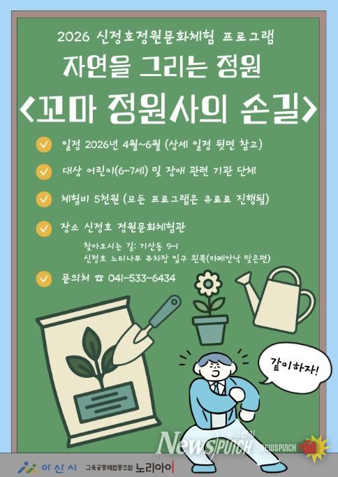 뉴스펀치 이현승 기자 | 아산시는 오는 4월 13일부터 6월 23일까지 신정호정원에서 상반기 정원문화체험 프로그램을 운영한다고 밝혔다.