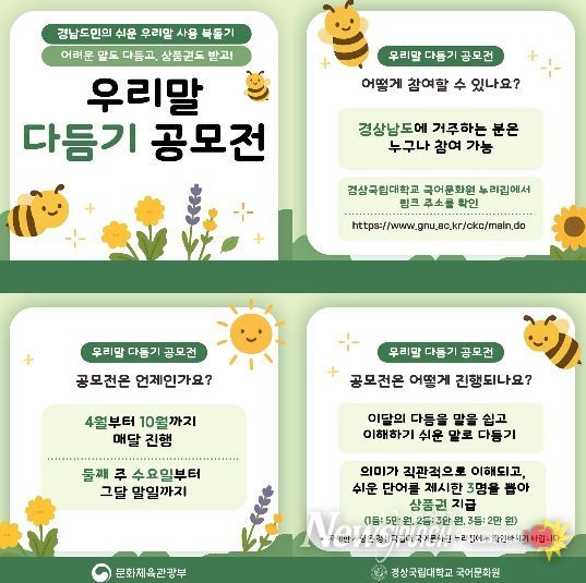 뉴스펀치 박세훈 기자 | 경상국립대학교 국어문화원은 어려운 외국어·외래어·한자어 등을 쉬운 우리말로 다듬어 보는 ‘우리말 다듬기 공모전’을 개최한다.