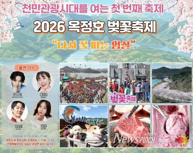 뉴스펀치 정홍균 기자 | 2026년 천만관광 임실 실현의 출발점이 될 옥정호 벚꽃축제가 오는 4월 11일부터 12일까지 이틀간 옥정호 출렁다리 앞 특설행사장(운암면 입석1길 59)에서 화려하게 펼쳐진다.