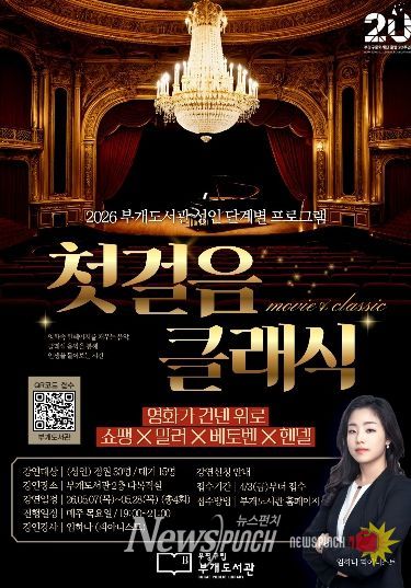 뉴스펀치 정홍균 기자 | 부평구립 부개도서관은 오는 5월 영화와 클래식 음악을 결합한 인문 프로그램 ‘첫걸음 클래식: 영화가 건넨 위로’를 운영한다.