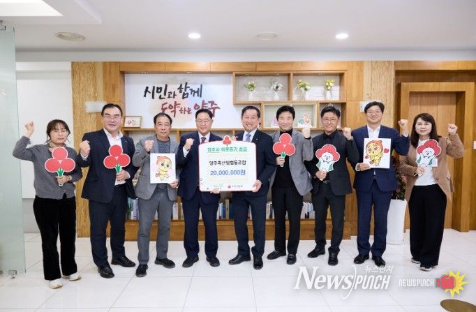 뉴스펀치 박상훈 기자 | 양주시가 지난 8일 시장실에서 양주축산업협동조합(조합장 이후광)으로부터 이웃돕기 성금 2,000만 원을 기탁받았다고 밝혔다.
