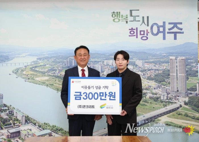뉴스펀치 박상훈 기자 | 지난 8일 부석환 ㈜콘크리트 대표는 여주시청을 방문하여 이웃돕기 성금 300만원을 기탁했다.