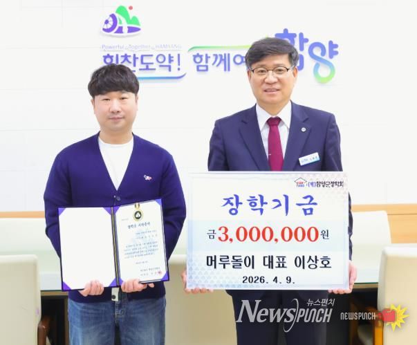 뉴스펀치 박세훈 기자 | (재)함양군장학회는 4월 9일 함양소방서에서 100만 원, 머루돌이 농장 이상호 대표가 300만 원을 지역 인재 육성을 위한 장학금을 기탁했다고 밝혔다.