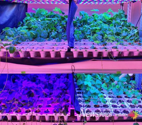 장치에는 수직농장 내 인공광원(LED)을 적용해 딸기 생육에 적합한 환경을 조성했다.