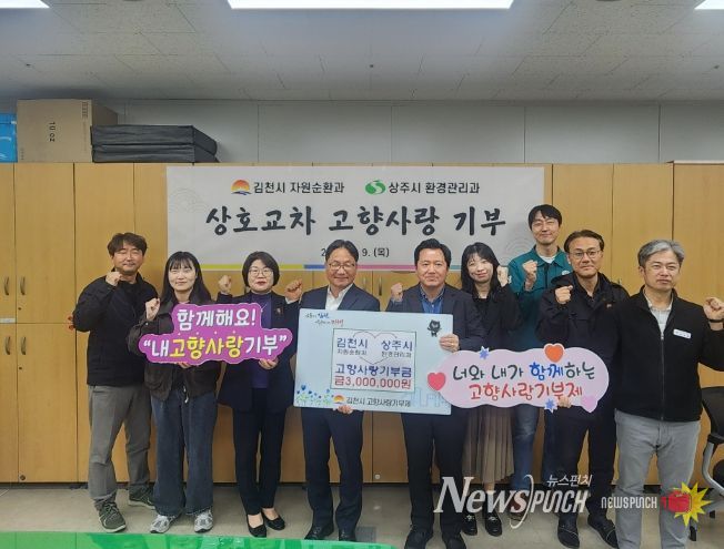뉴스펀치 박세훈 기자 | 지난 9일, 김천시 자원순환과는 상주시 환경관리과와 고향사랑기부제 활성화를 위해 상호 기부의 자리를 마련했다.
