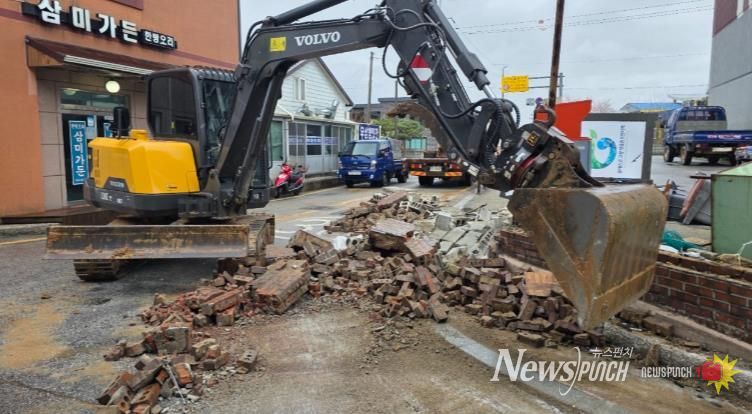 붕괴된 담장 잔해물이 주변 도로로 흩어지며 주민 통행 불편과 안전사고 우려가 커졌다.