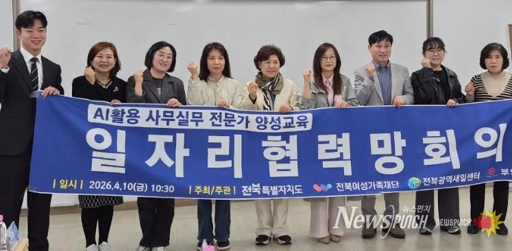 뉴스펀치 정홍균 기자 | 부안군과 전북광역여성새로일하기센터는 10일 부안군 신활력플러스사업추진단 회의실에서 ‘AI활용 사무실무전문가 양성교육’ 개강식 및 일자리 협력망 회의를 개최했다.