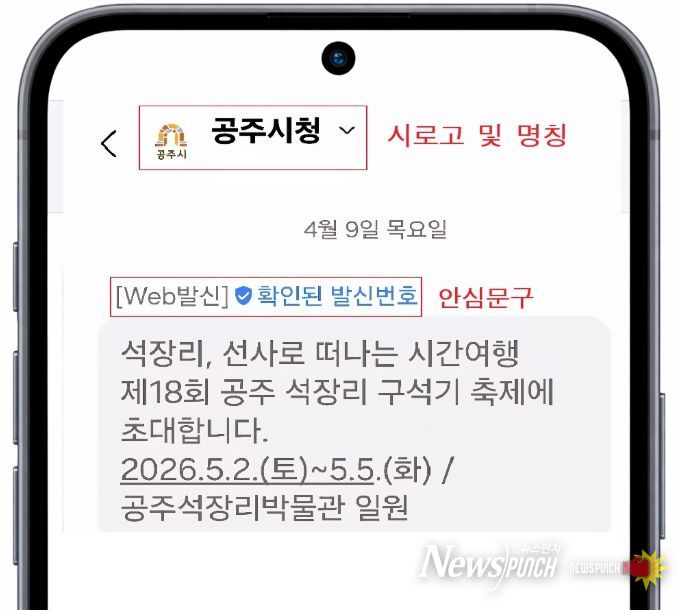 송무경 공주시장 권한대행은 “최근 공공기관을 사칭한 문자메시지로 인한 피해가 꾸준히 발생해 시민들의 불안이 커지고 있다”며 “안심마크 서비스를 통해 공주시에서 발송한 공식 문자임을 명확히 확인할 수 있게 함으로써, 사칭 피해를 줄이는 데 실질적인 도움이 될 것으로 기대한다”고 말했다.