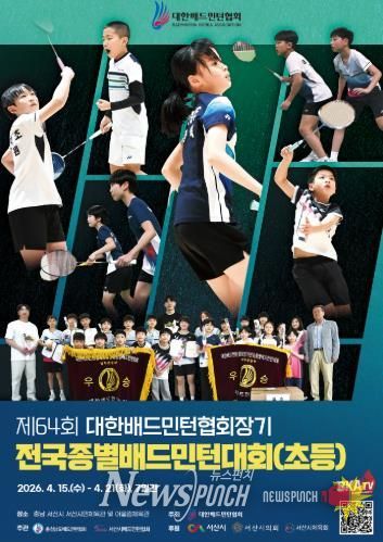뉴스펀치 이현승 기자 | 충남 서산시는 2026 대한배드민턴협회장기 전국종별배드민턴대회(초등부)가 4월 15일부터 21일까지 7일간 서산시민체육관과 서산어울림체육관에서 개최된다고 밝혔다.