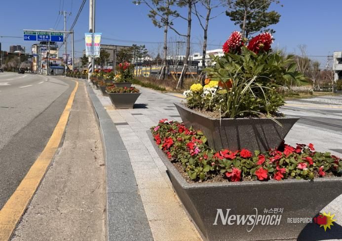 뉴스펀치 정홍균 기자 | 익산시가 도심 곳곳에 봄꽃을 심어 생동감 있는 봄 경관을 입히고 있다.