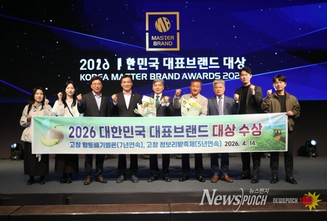 뉴스펀치 정홍균 기자 | 고창군이 14일 서울 신라호텔에서 열린 ‘2026 대한민국 대표브랜드 대상’ 시상식에서 ‘고창 황토배기멜론’과 ‘고창 청보리밭축제’가 나란히 대상을 수상하며, 지역 대표 브랜드의 경쟁력을 입증했다.