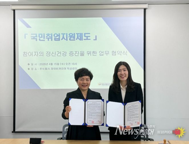 뉴스펀치 최영남 기자 | 익산시정신건강복지센터는 15일 '제이비커리어'와 구직자의 정신건강 증진과 자살 예방을 위한 업무 협약을 체결했다.