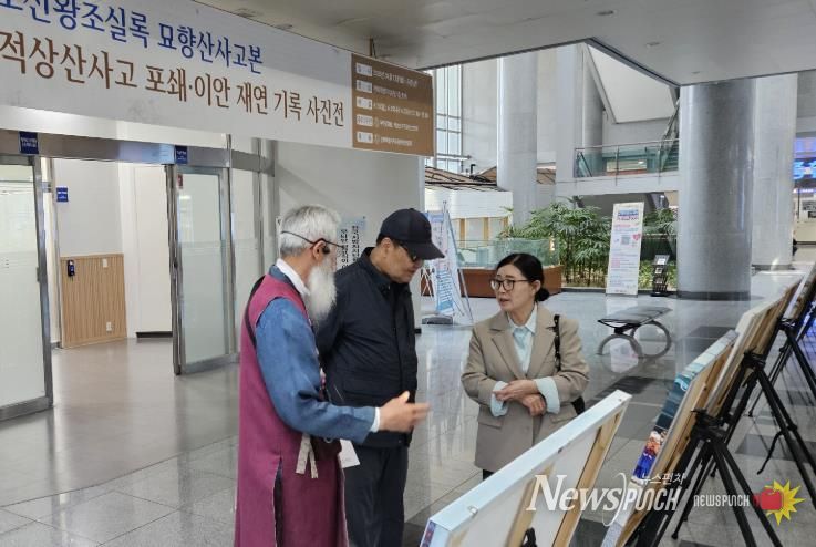 이 자리에서는 ‘조선왕조실록 묘향산사고본 적상사고 포쇄·이안 재연’ 사진 40여 점(1점 89*59cm)을 비롯해 자료 저장소와 연계된 ‘QR 코드’를 통해 재연 영상이나 설명을 볼 수 있다.