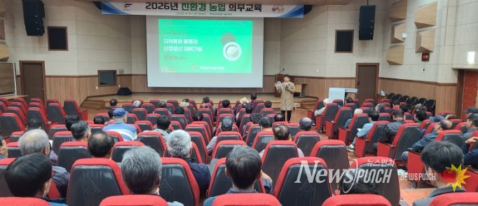 뉴스펀치 강영선 기자 | 부여군은 지난 15일 오후 2시 농업기술센터 대강당에서 관내 친환경 농업인 및 교육 희망 농가 100여 명을 대상으로 ‘2026년 친환경 농업 의무교육’을 개최했다.